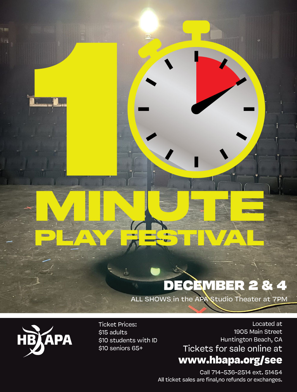 APA’s Dramatic Production Department presents the annual 10 Minute Play Festival where student playwrights and directors will premiere their original exploratory 10 Minute plays accompanied by creative work from APA’s Acting, Costume Design, and Technical Theatre Departments.